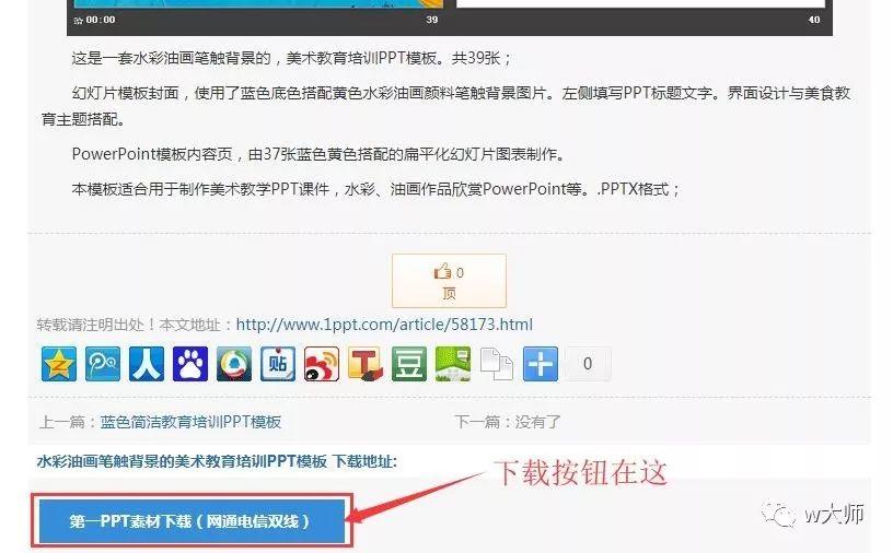 由于下载页面有好几个下载按钮,记得滑动到页面底部,找到【第一ppt素材下载】的按钮,才是ppt模板下载的按钮。