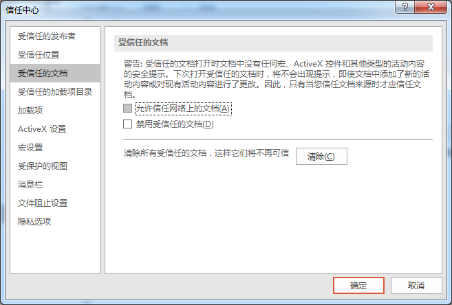 1.高版本的PPT默认的宏安全等级比较高,往往对所有外来文件都“拒之门外”,而我们有时又需要从网络下载一些PPT模板,可系统却拒绝查看,提示存在安全问题,那么该怎么办呢?在确认从网络上下载的PPT模板安全可靠无病毒后,按照以下步骤进行设置:依次点击打开:文件选项卡-选项-信任中心-信任中心设置-宏设置,勾选【启用所有宏】再点击:受信任的文档,然后勾选【允许信任网络上的文档】,点击确认即可