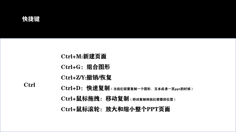 Ctrl+D 可以进行进行快速复制和等距离复制,相当于Ctrl+C 和 Ctrl+V 的结合以及升级版,这样就能快速排列整齐大量对象,这个我制作PPT用的最频繁的一个快捷键了。