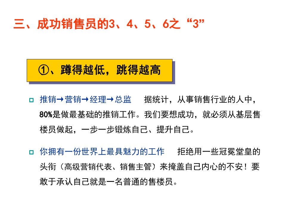 1.企管知识:最系统的房地产销售培训资料PPT←←←←标题名称(我们分享的内容均由可编辑档)【企管知识】专注于企业管理知识的分享! 包括经营、战略、开发、采购、项目、生产、质量、交付、安全、绩效等管理知识及培训PPT、文档资料的分享,感谢您的关注,期待您的咨询!【资料下载方式】方法①:关注同名公众号[企管知识],发送文件(标题名称),可获得PDF档方法②:编辑档自助下载: t.zsxq.com/IeUf2FE【免责声明】部分内容摘自网络,如侵权请私信联系删除,谢谢!
