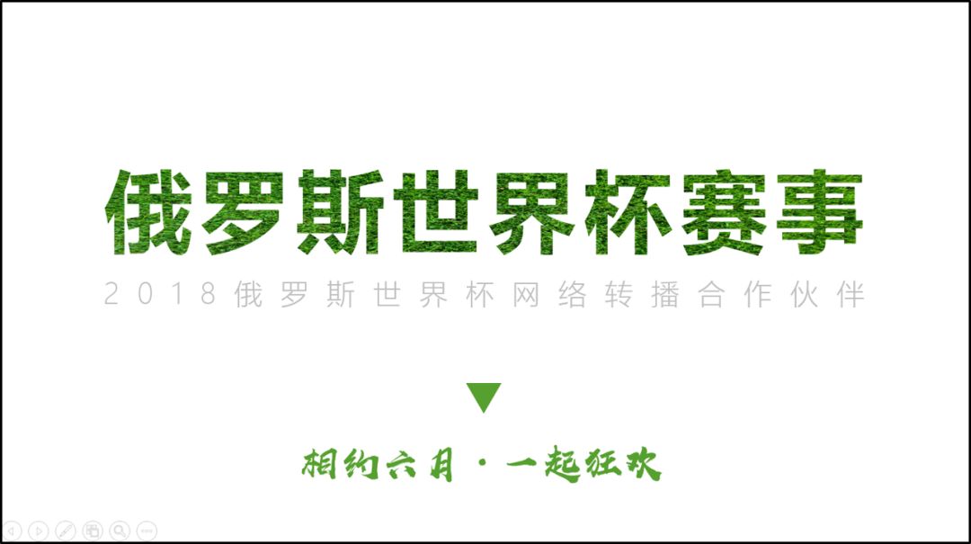 比如下面这页幻灯片,想要表达世界杯,将文字填充为草坪,显得更形象,视觉效果也更好。