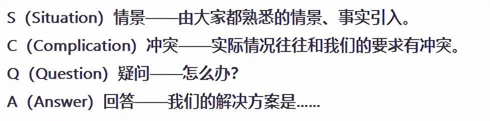 这一块,小编推荐当前比较流行的模型“SCQA”即:场景(S)+冲突(C)+问题(Q)+回答(A突出解决方案)