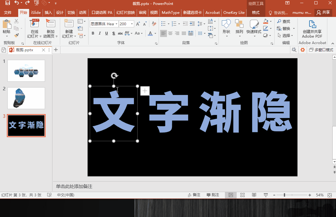 利用填充效果制作渐隐文字?右键选择【设置形状格式】--【文本选项】--【文本填充】--【渐变填充】,将文字靠近的地方选择黑色,选中其他文字,按F4复制上一步操作就OK 了。