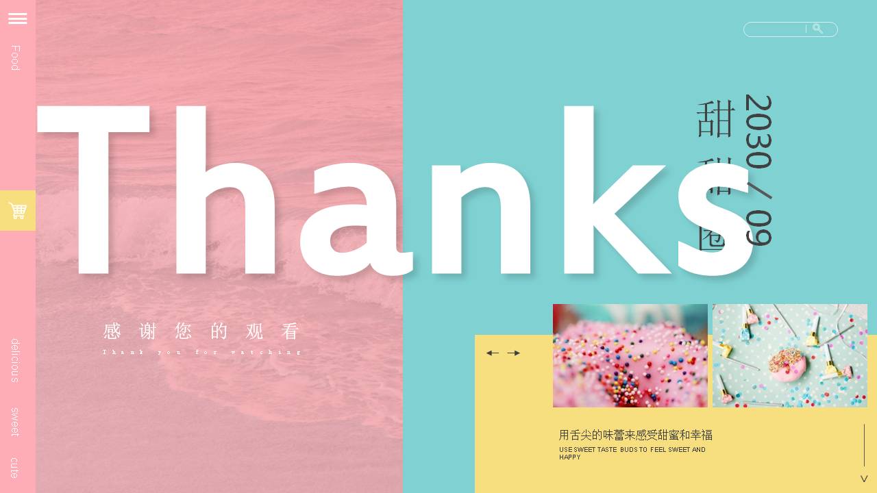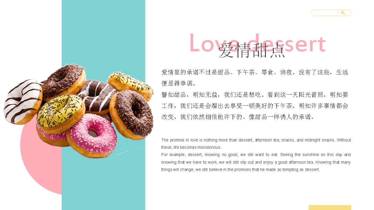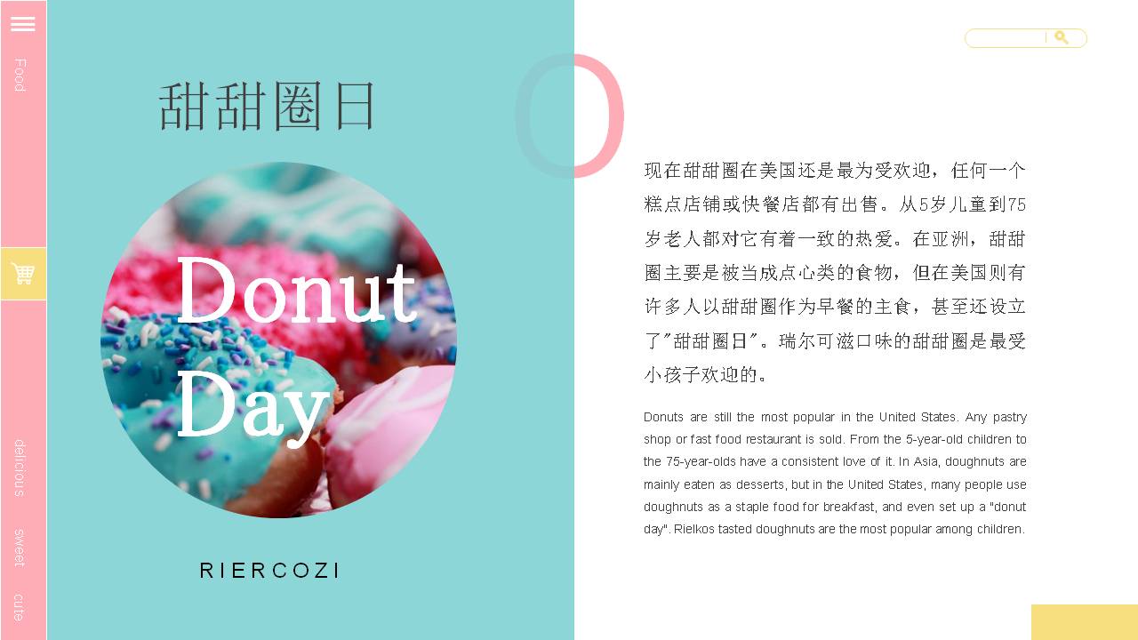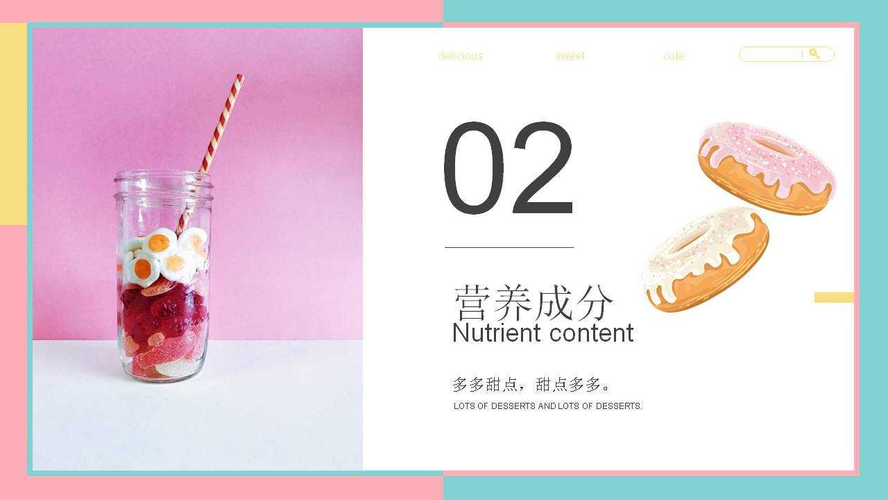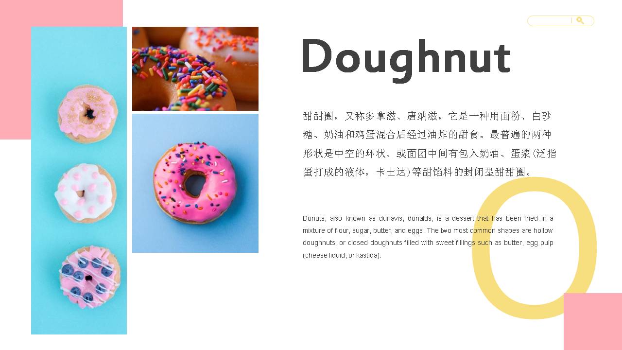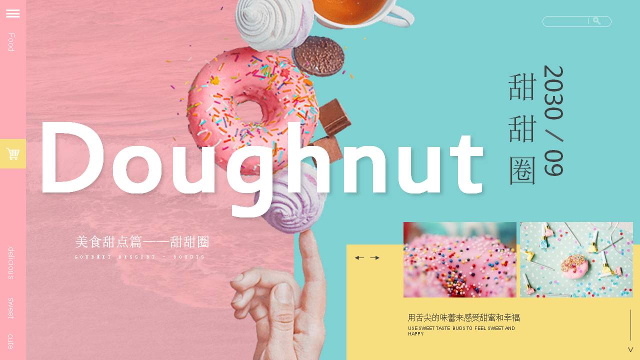 3.左侧使用英文填写Doughnut,右侧填写甜甜圈PPT标题。