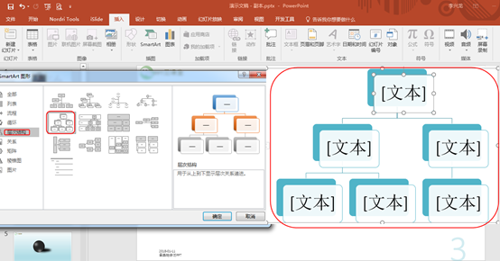 例如下面我需要创建一个层次结构关系图,那我们选择层次结构,选择其中一种图形点击确定即可: