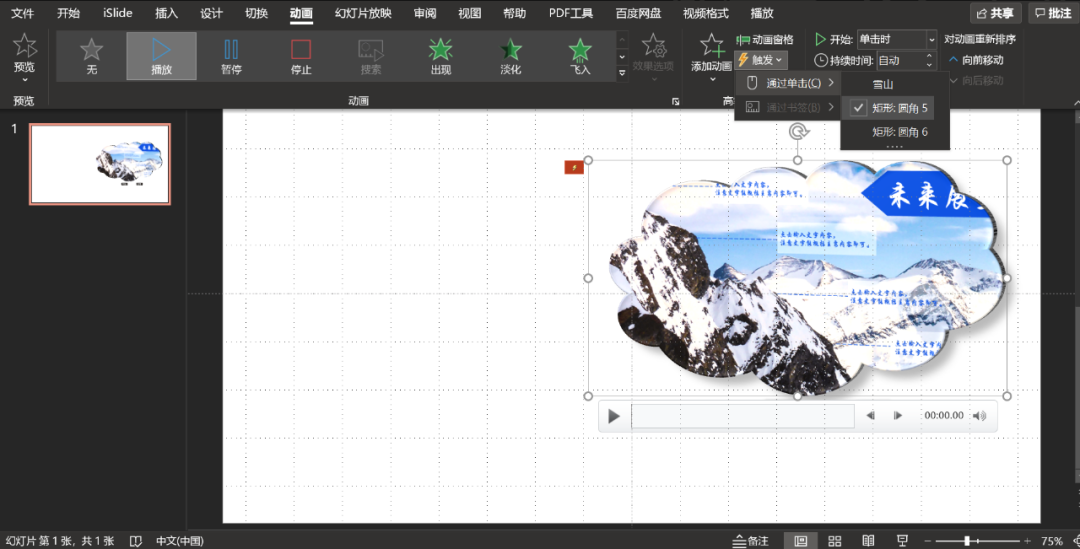 今天给大家分享的是PPT插入视频封面、视频样式及形状和触发器控制视频的播放与暂停设置。