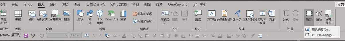 1.打开PPT,在插入选项中有屏幕录制和视频选项。