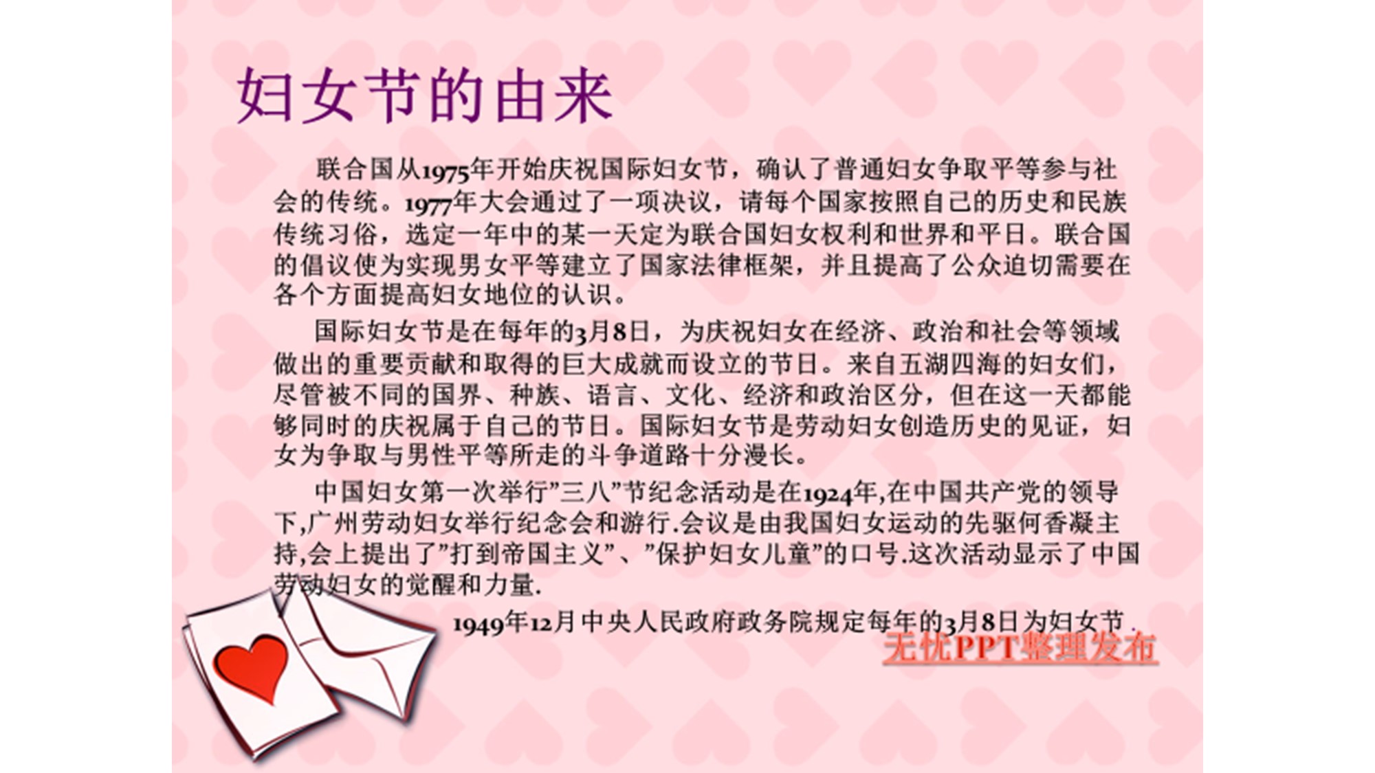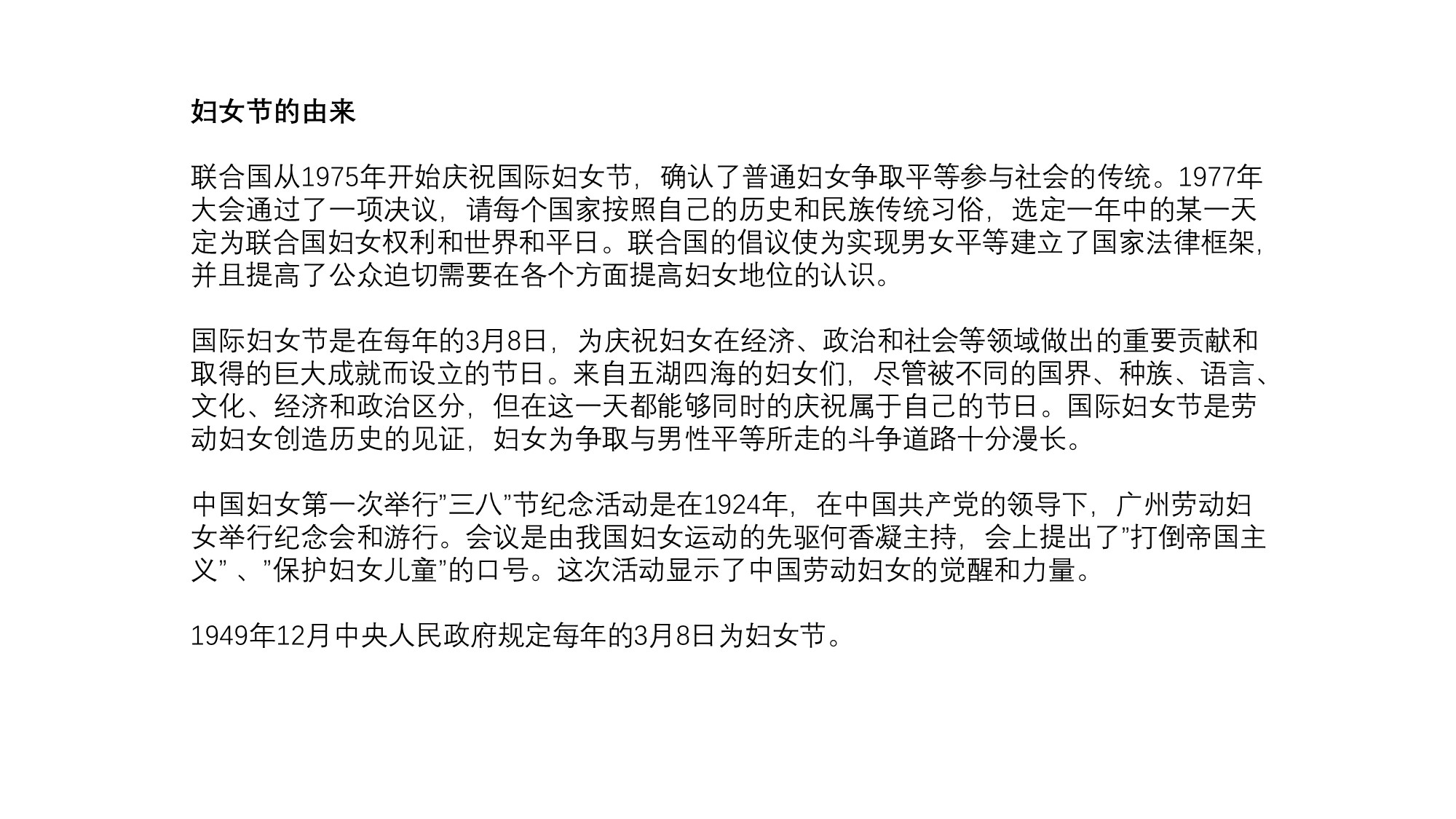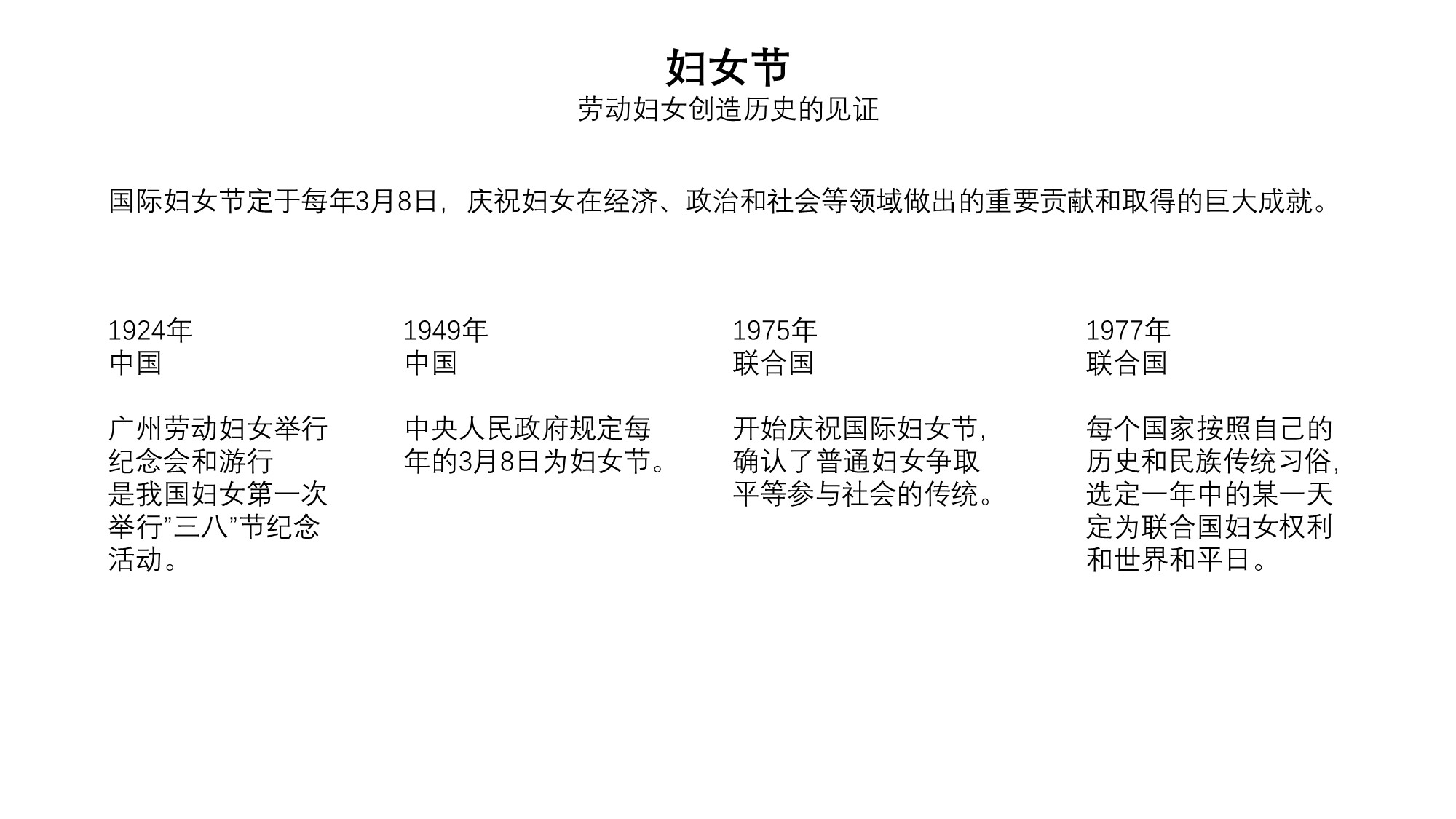 原始内容来自互联网,主要讲述妇女节在中国及国际上的由来。