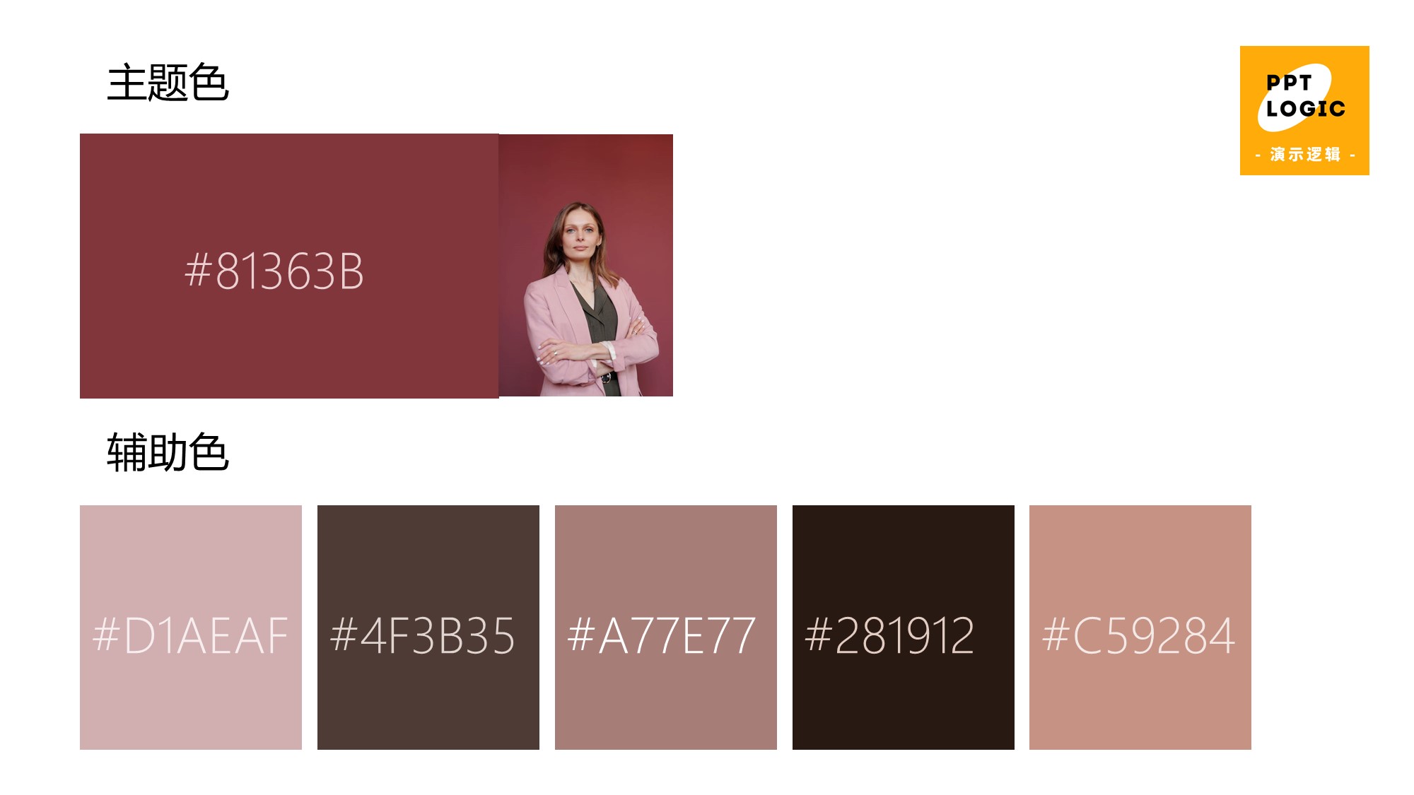 确定配色方案,我们找了一张主题为自信女性代表的图片,提取图片主要的6种颜色如下,作为我们今天的配色方案。