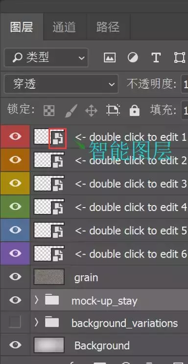 上面红框这个标志表示智能图层,双击进入编辑模式,即可将原图替换为自己想要展示的幻灯片: