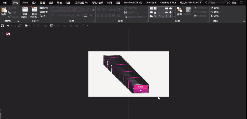 组合所有幻灯片,旋转合适角度,等比例调整大小,确保图片覆盖整个画布