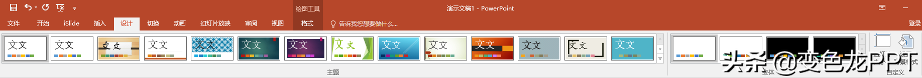 在“设计”中,可以对PPT的母版、页面比例、配色方案、整体风格进行设计。