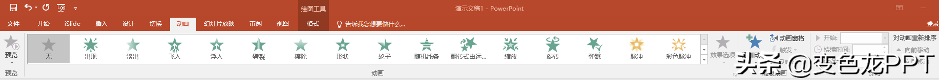 两种都是在幻灯片放映的情况下,才能够显示动画效果。