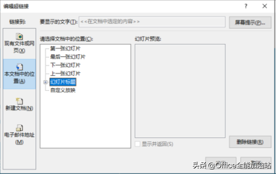 3.设置屏幕提示:单击“屏幕提示”按钮,可在打开的对话框中设置提示文本。