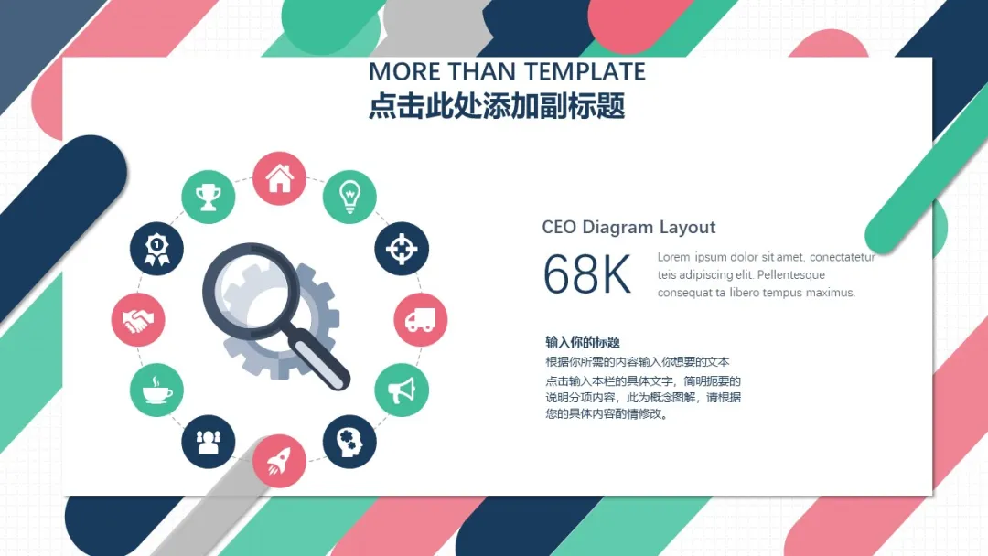 我们可以使用形状工具,比如矩形、圆形和线条,这样可以让页面更加规整,也为划分层次起到辅助作用。建议配合PPT自带的“SmartArt”使用。