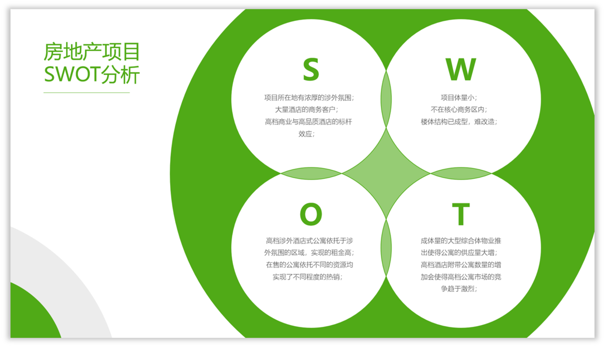 再比如之前分享的这页PPT,由于内容多少不一,参差不齐,使用圆形叠加的方法即可规整。