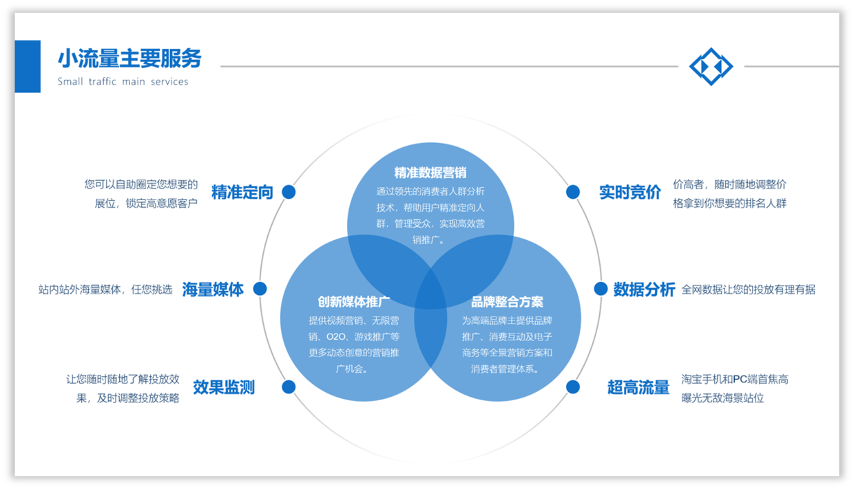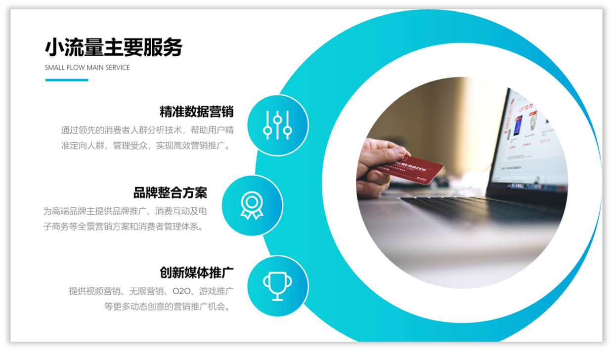 用圆形组合而成的逻辑图表,能增强视觉效果,同时还能让页面变得更加清晰很多。