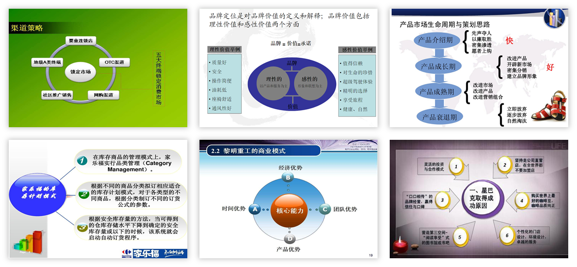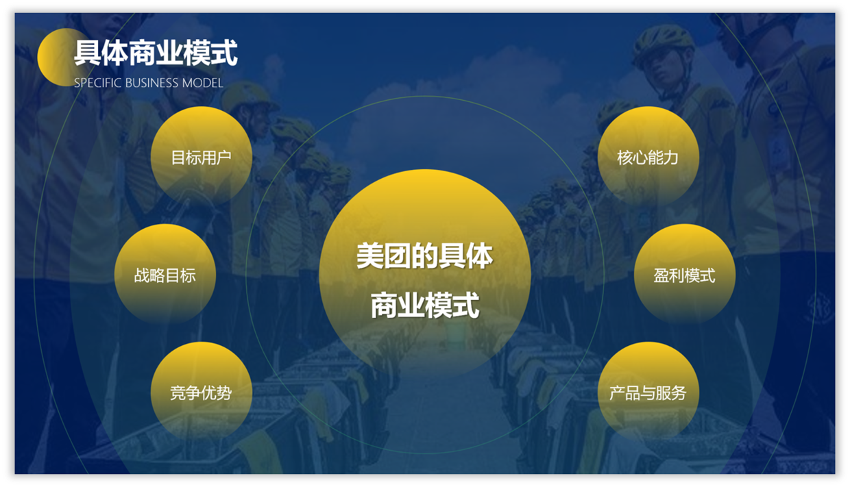 这里就插入一个总分的圆形逻辑图表,也是非常有创意,看一下。