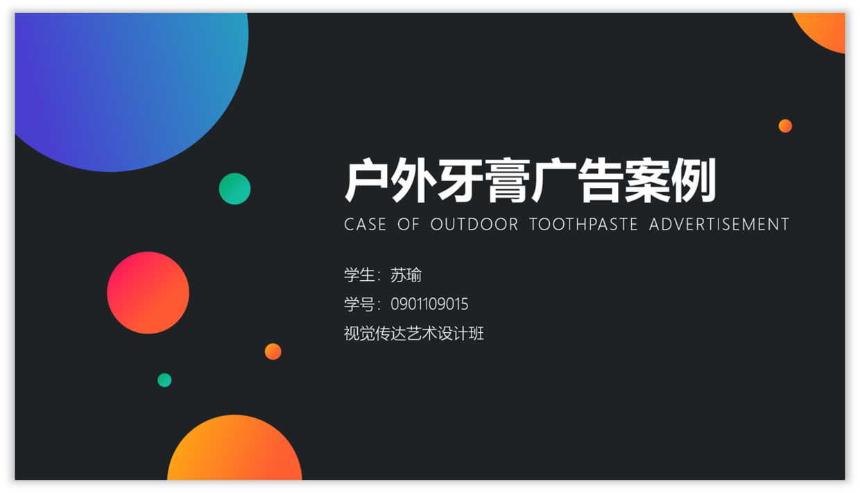 除此之外,一般封面页只用文字设计很单调,增加这种渐变的圆形即可提高设计感。