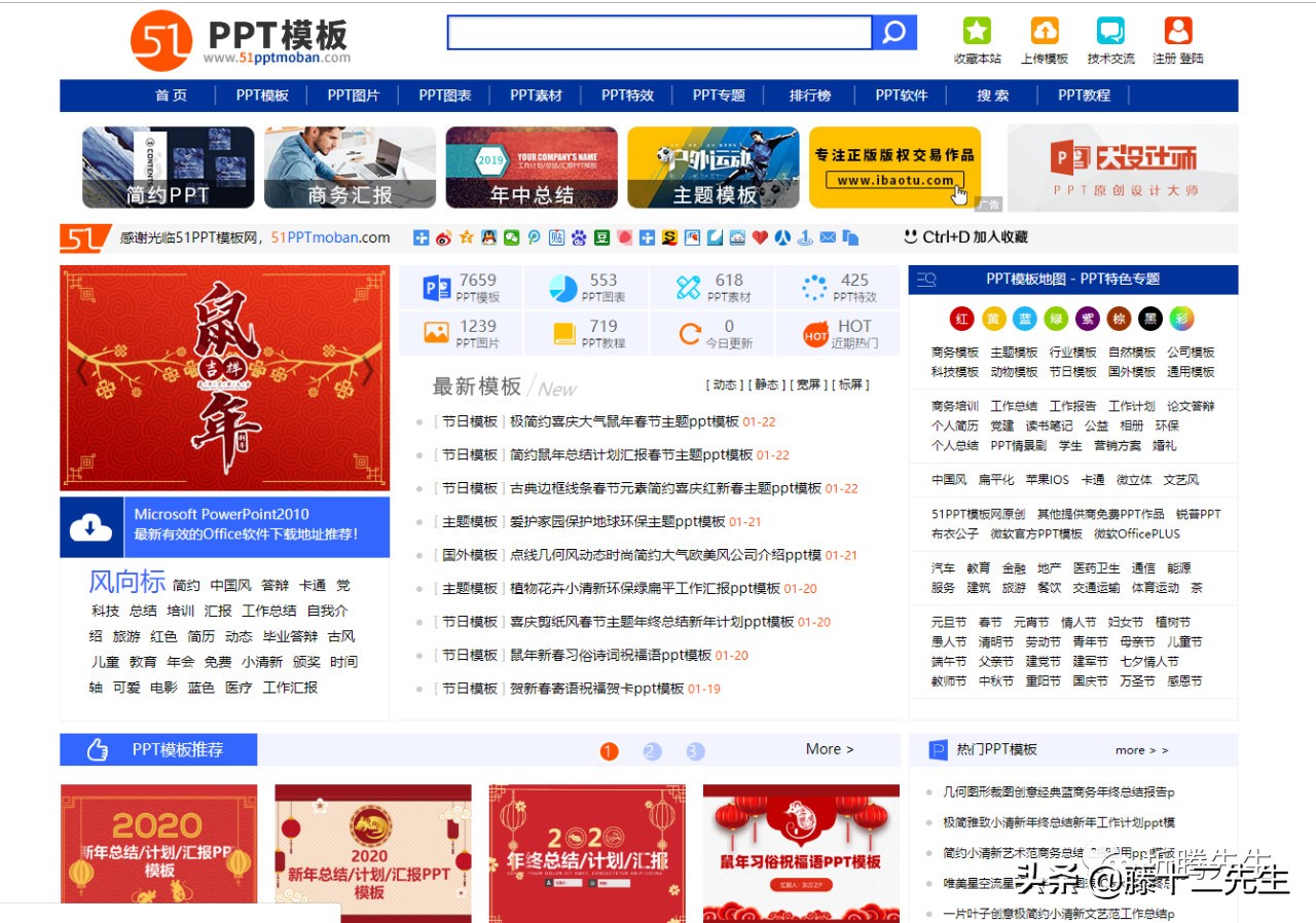首先,虽然他的界面设计风格没有其他PPT网站那么简约大方,但是在上面你可以感受到之前互联网老人的界面风格和常用的网站。同时分类极其的详细,方便我们在上面找到所需要的资源。