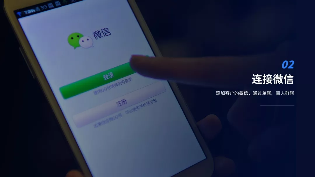 过渡页采用了全图型的PPT设计,以微信的使用作为背景。