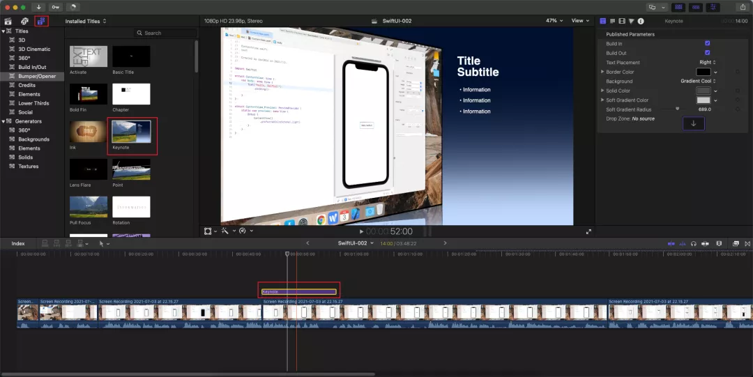 1.记录一些在视频编辑中日常使用的效果主要适用于教程类视频,如最近录制的SwiftUITips:Final Cut Pro是一款仅在Mac可用的视频编辑软件
