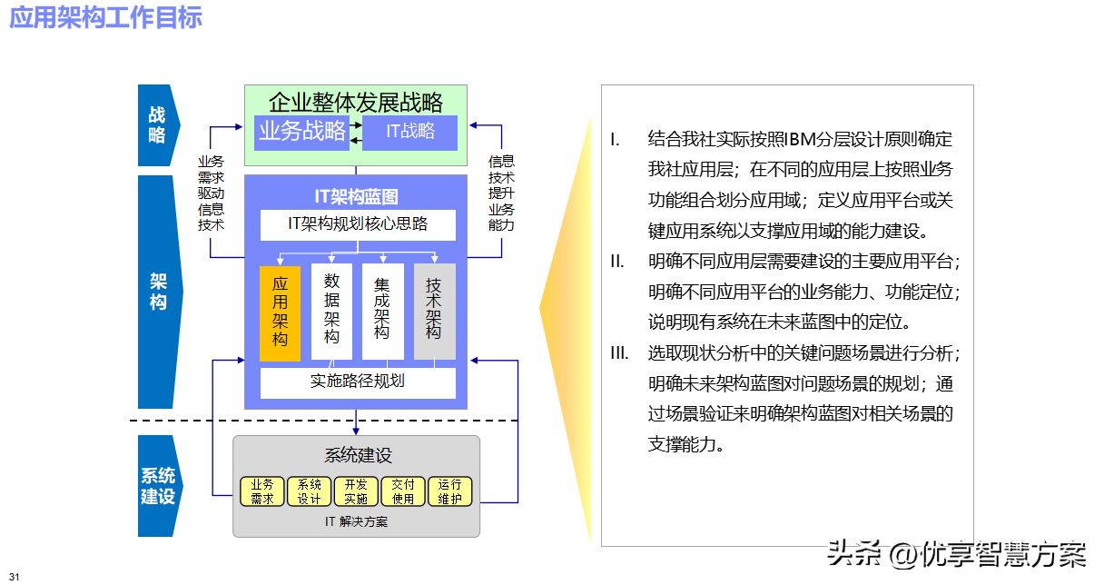 明确不同应用层需要建设的主要应用平台;明确不同应用平台的业务能力、功能定位;说明现有系统在未来蓝图中的定位。