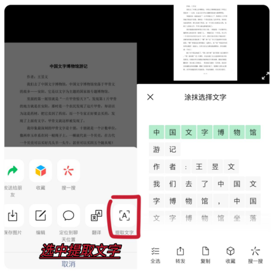 长按图片,会出现八种功能,我们找到“提取文字”将图片上的文字都提取出来,根据需求适当删减选中文字,就可以完成图片转文字啦,是不是特别简单,对于要求不是很高的小伙伴简直绰绰有余!