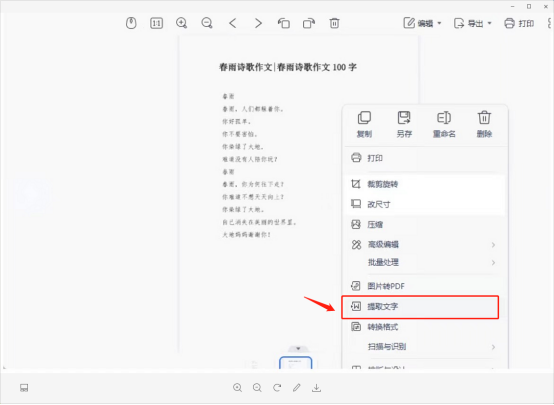 先把需要提取文字的图片用WPS打开,点击右键功能键,选择“提取文字”即可。