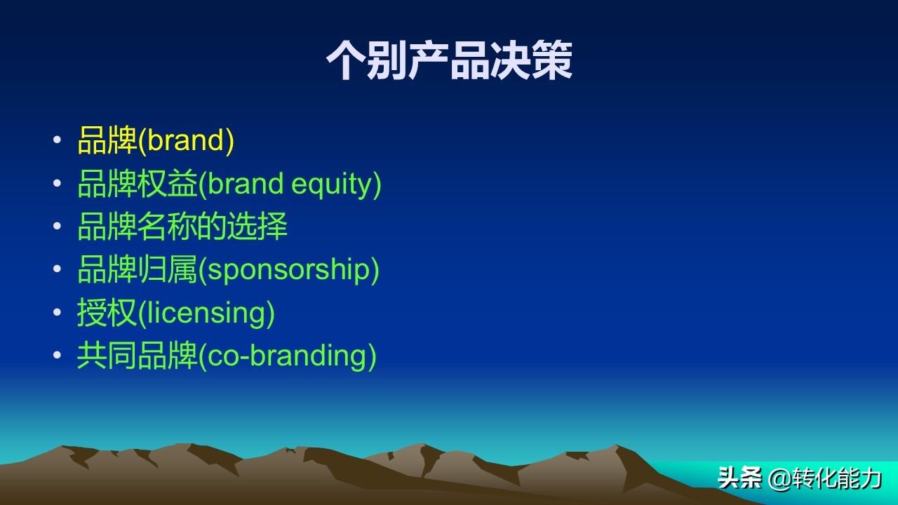 2.产品与服务策略什么是产品产品如何分类个别如何决策产品线决策产品组合决策什么是服务营销行销组织组织、人物、地点以及理念具体的PPT课件如何拿到PPT课件,请私信本头条号”品牌产品服务“6个字,免费获得