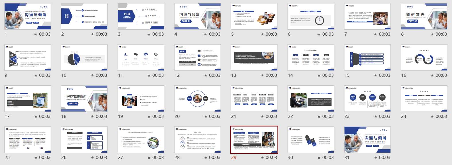 2.今天跟大家分享一张商务沟通与倾听企业培训PPT模板,全内容培训课件,直接F5走起。
