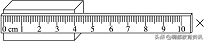 在上图所示的刻度尺中,其零刻度线在左端(离最左端边缘有一小段距离),没有磨损,它的量程为0~8 cm,也就是说它最多能测8 cm的长度,它的分度值是0.1 cm。