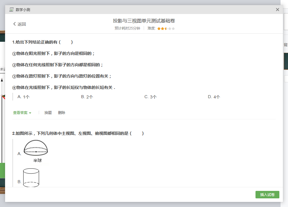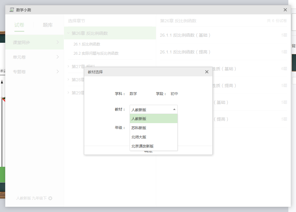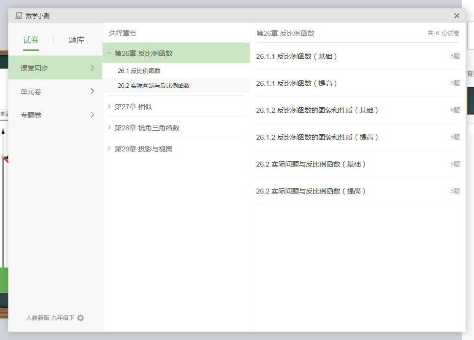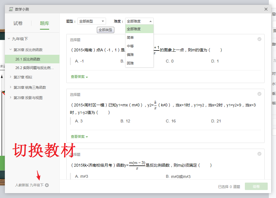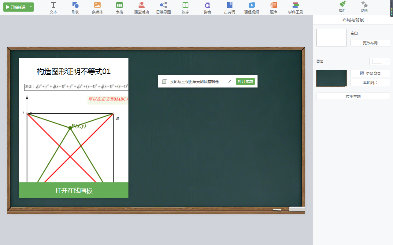 小提示:数学小测内的试题资源无法搜索,而且资源相对较少,但足够满足课堂展示需求。