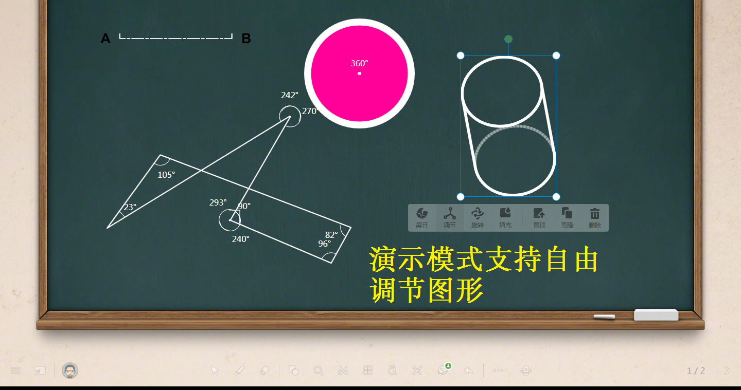 完成编辑进入演示模式之后,我们还可以调节图形大小等,十分方便。