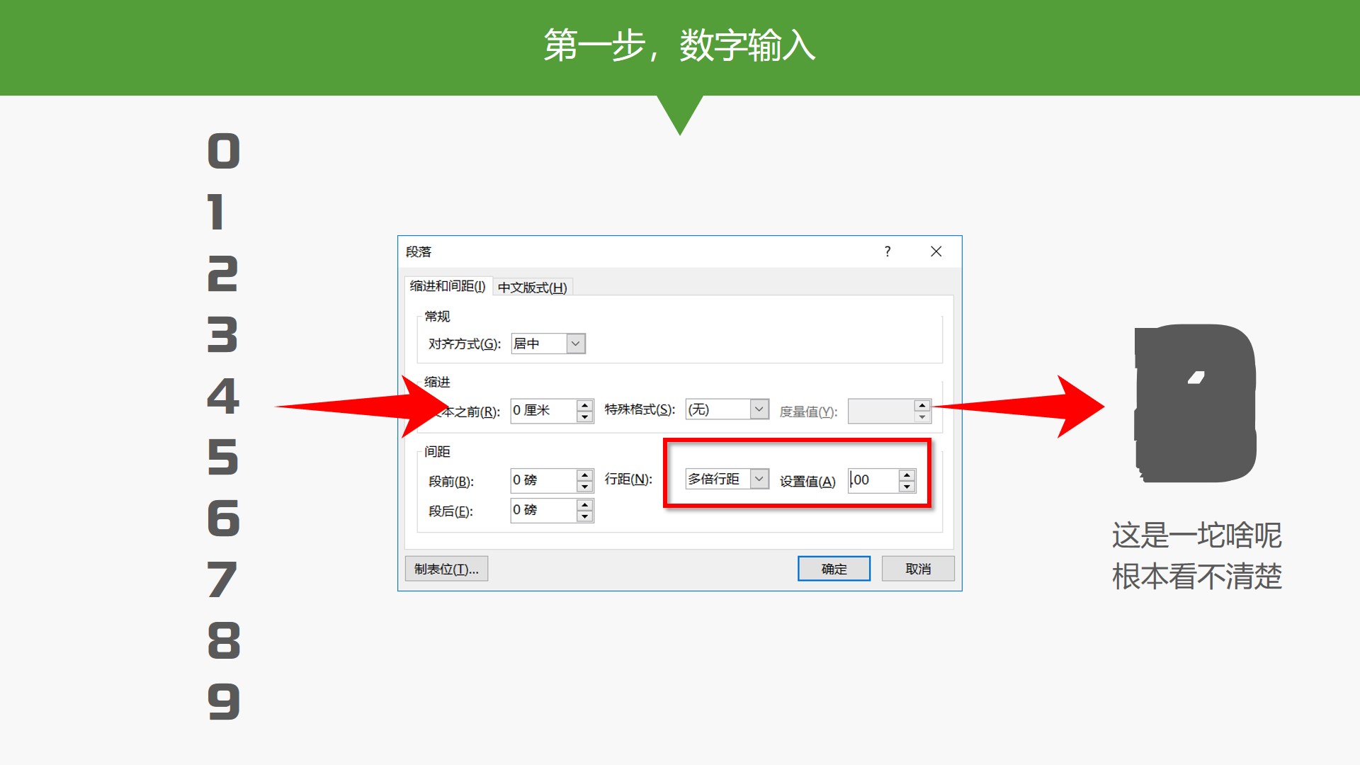 第一步、输入数字。插入文本框,输入0-9十个数字,每输入一个数字按一个回车,并设置行距为0。