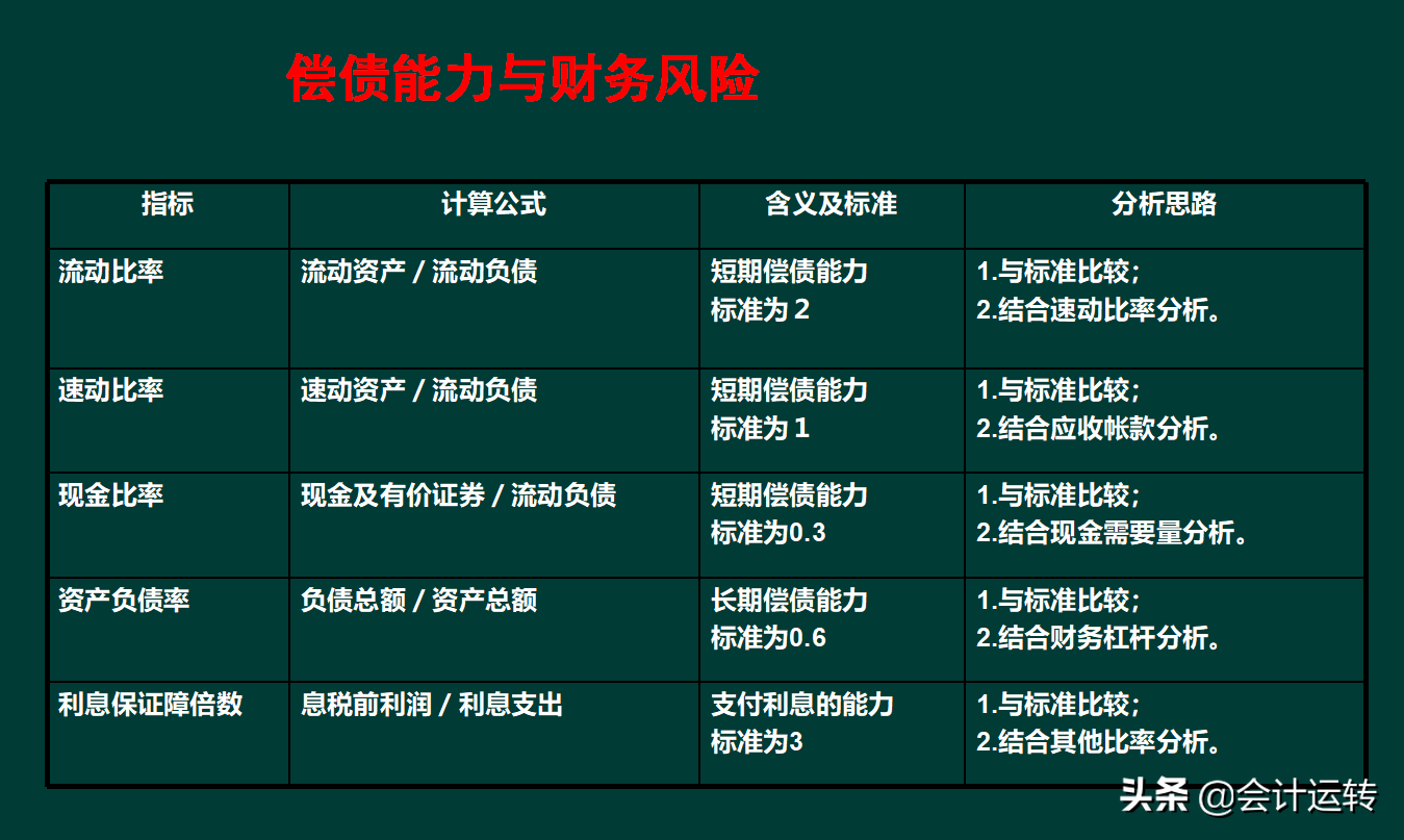 通过各种指标(公式)分析企业的偿债能力与财务风险