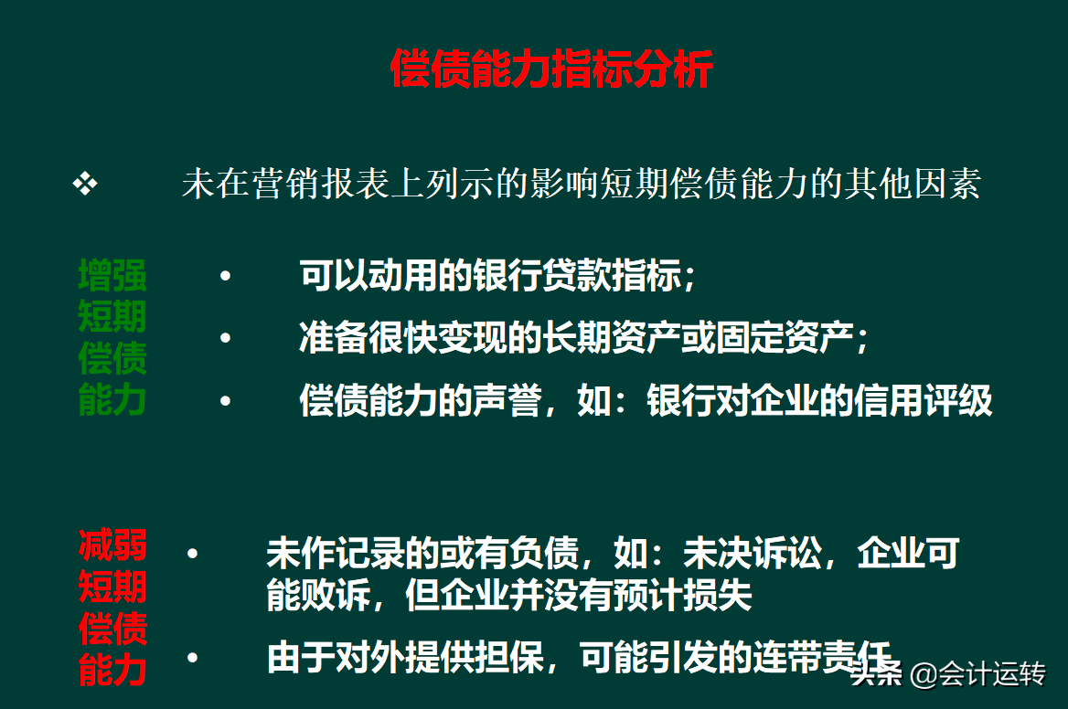 增强短期偿债能力因素;减弱短期偿债能力因素