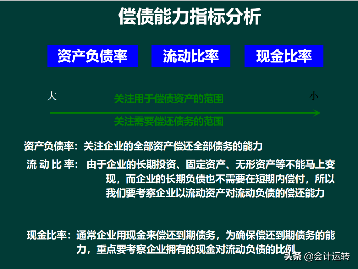 企业应该通过三大块分析关注用于偿还资产的范围和需要偿还债务的范围。