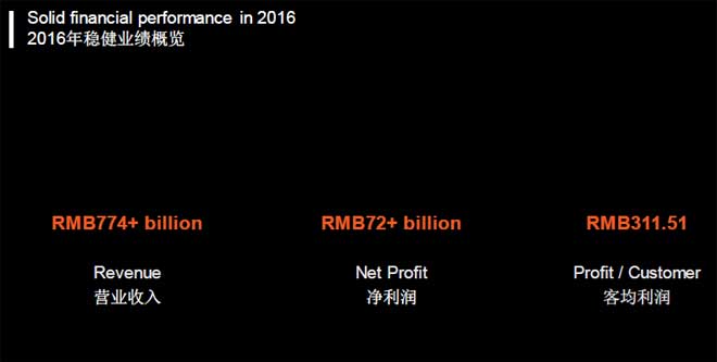 根据介绍,中国平安2016年营业收入超过7740亿、净利润超过720亿、客均利润311.5。