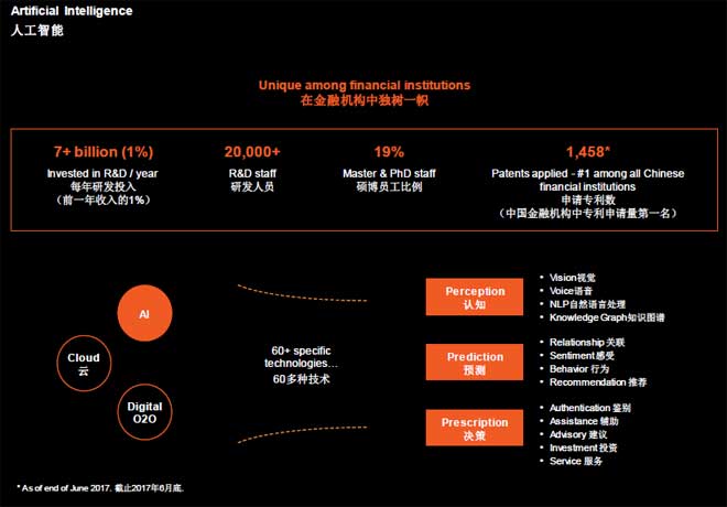 人工智能目前分为认知、预测、决策三方面应用,平安投入了大量时间来将AI运用于这三方面。