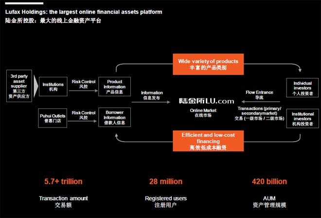 陆金所,是平安主打的第一个业务,为客户提供丰富的产品类别和高效的低成本融资。
