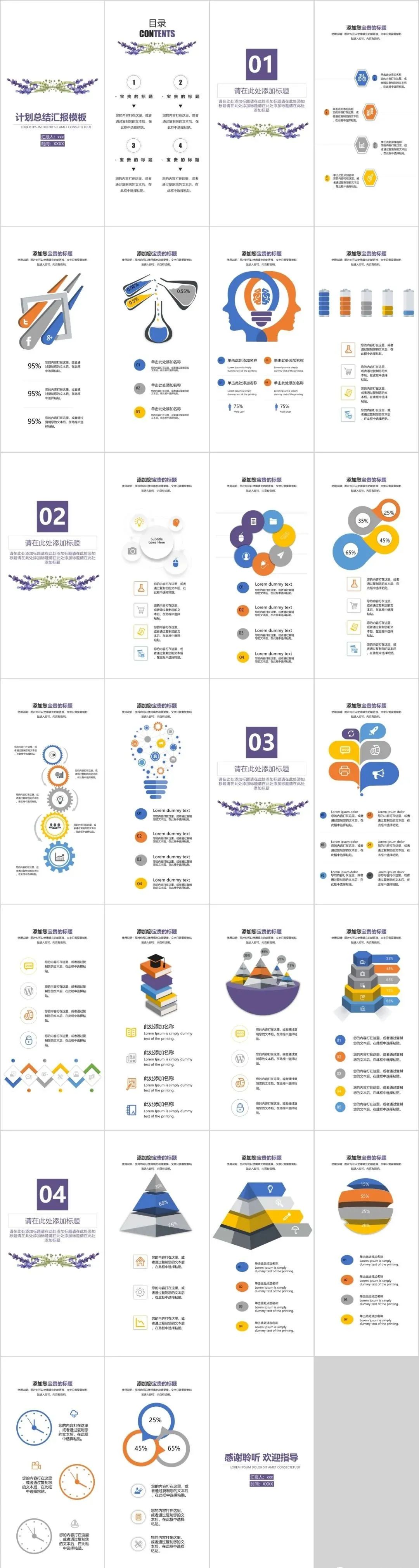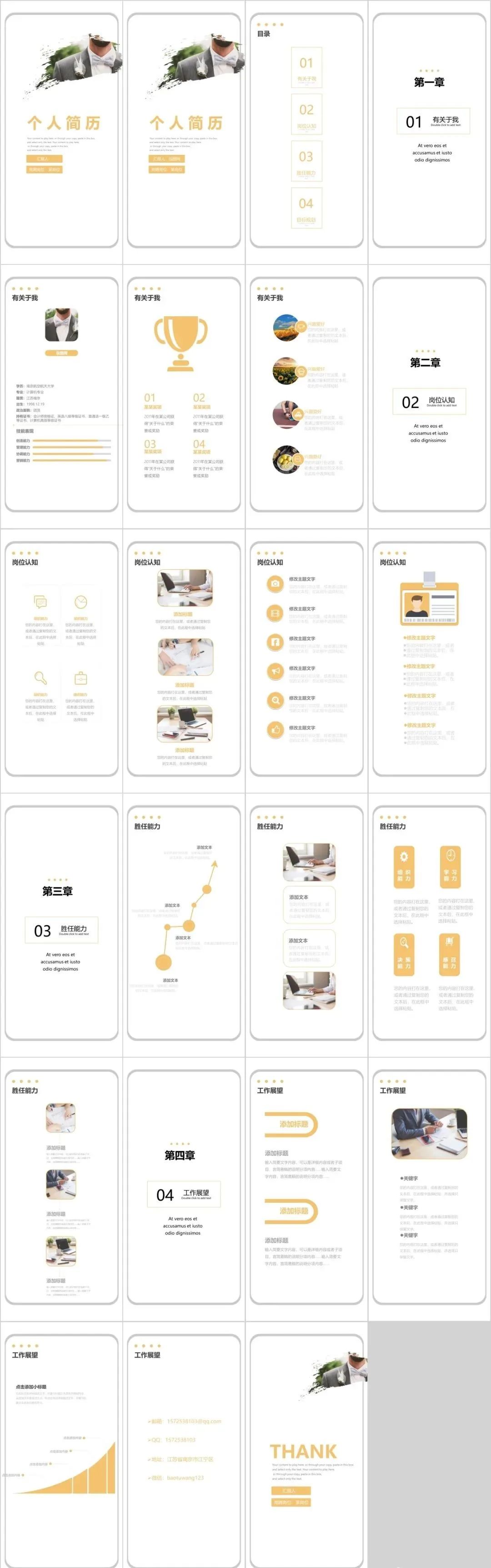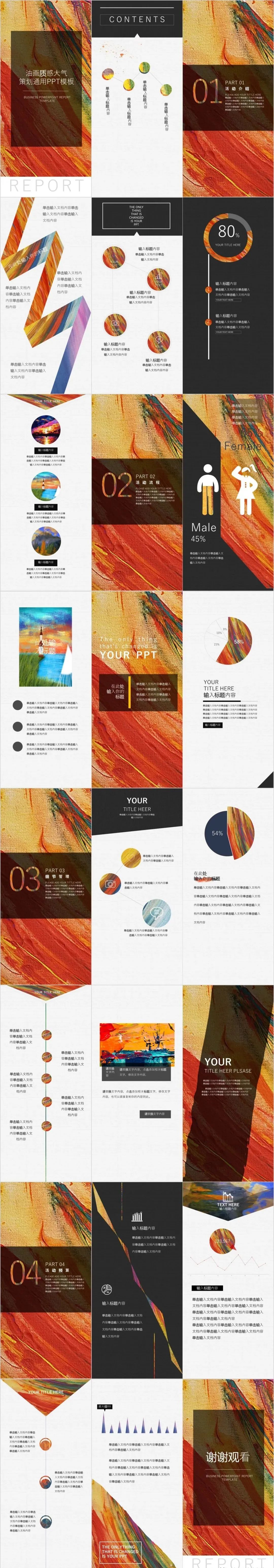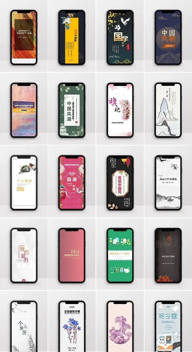 5.今天这组竖版PPT,风格多样,有油画风也有国潮复古的、清新文艺的、简约大气的都有,十分适合个人简历、邀请函、项目计划书、活动策划等场合。