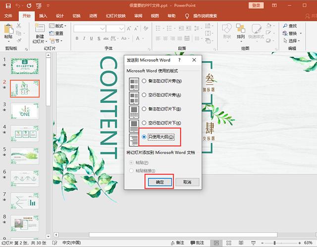 这售后会弹出一个窗口,提示“发送到Microsoft Word”,我们在这里选择【只使用大纲】,然后点击确定,这样就可以得到转换之后的Word文档了。
