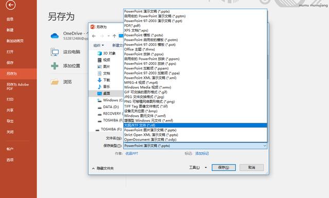 在下面的【保存类型】中选择【大纲/RTF文件】,进行保存,这样我们就得到了一个Word文档了。