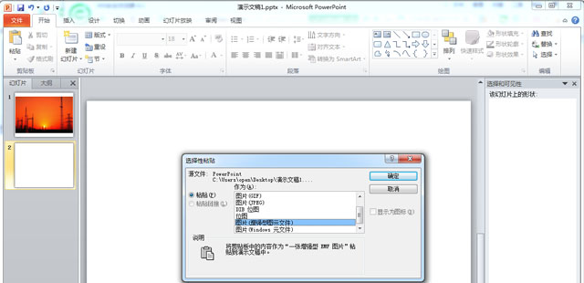 但是还没有添加动画效果呢?别急,接下来的步骤:剪切(Ctrl+X)—>选择性粘贴(Ctrl+Alt+V)—>选择“增强型图元文件”。
