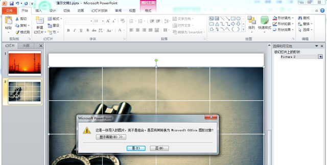 第六步,你只需要打散图片就可以了。右击鼠标选择“组合”点击“取消组合”,就会出现了一个对话框:
