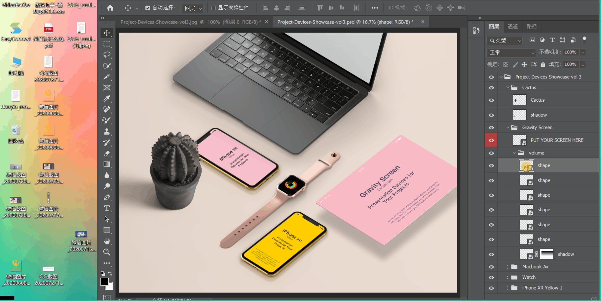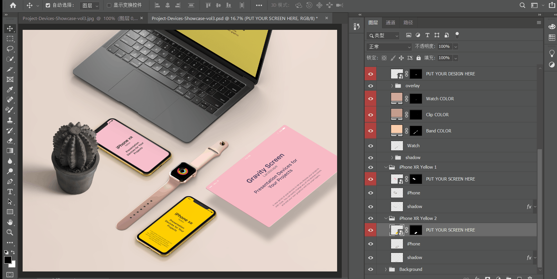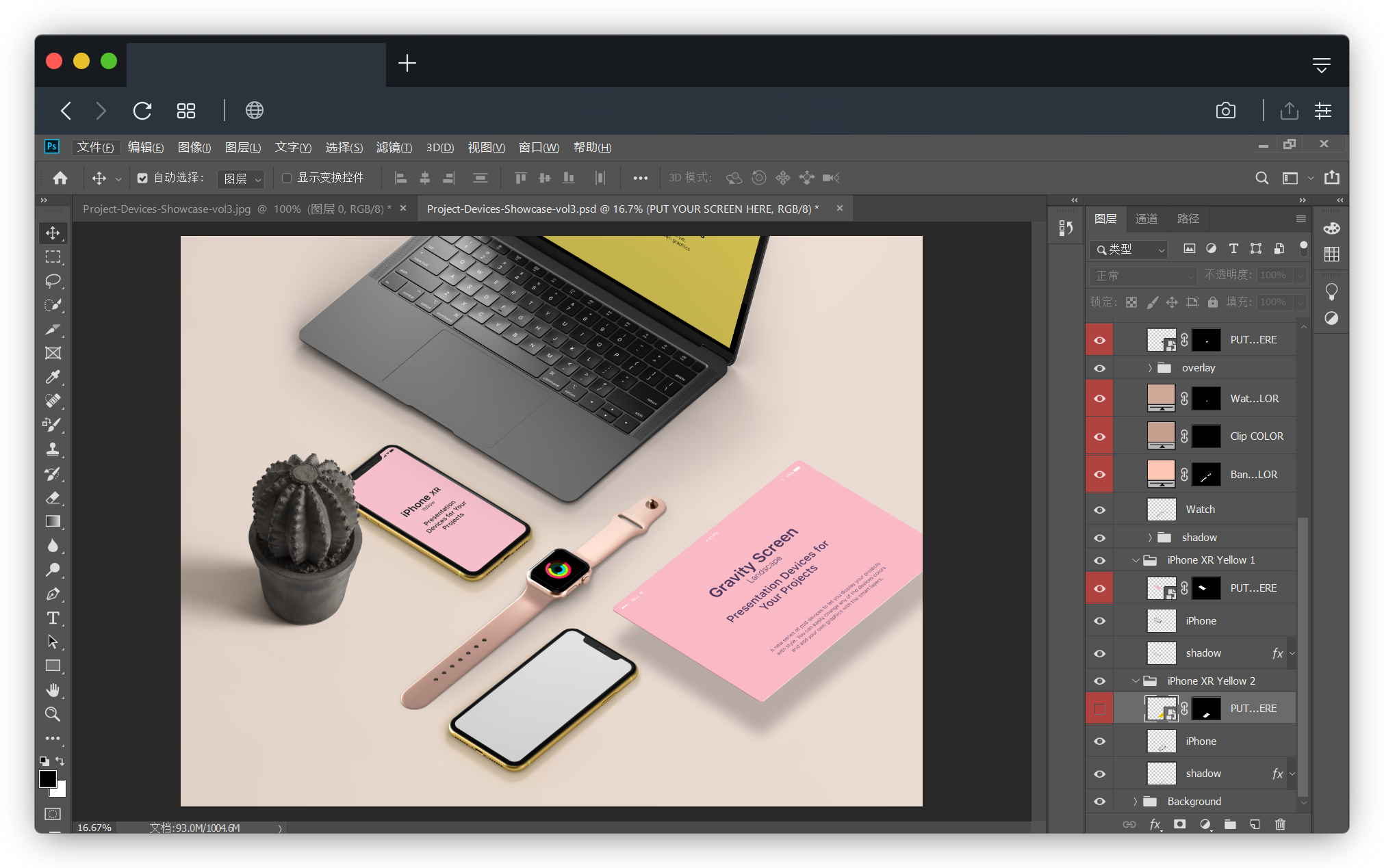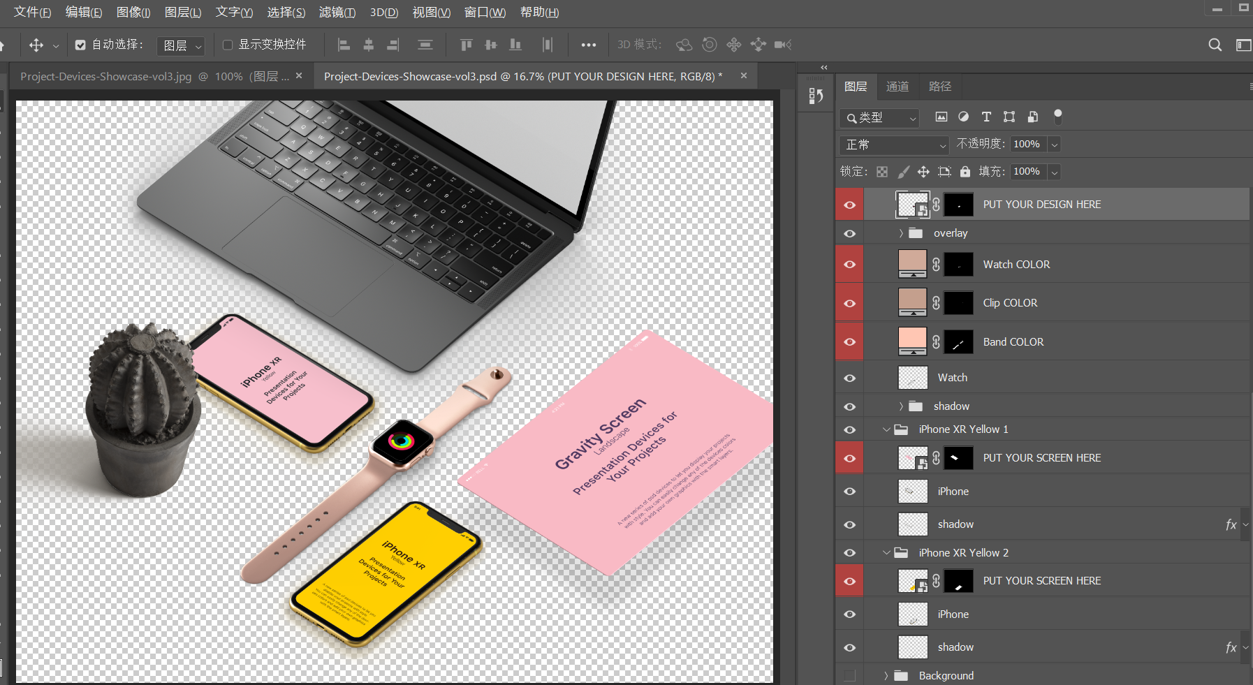这类样机,都是PSD格式的,我们需要使用PS软件,替换样机层,打开之后,替换图片,最后导出。