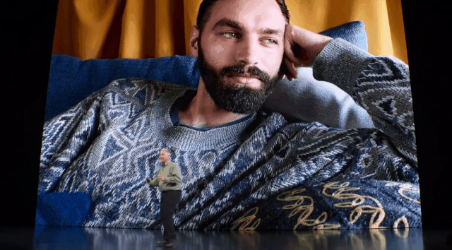 如苹果发布会的常规流程,开篇库克的介绍,从硬件、软件、和服务三大模块为大家引入,其中关于三个模块的融合动画,首先为我们打开了小基调。