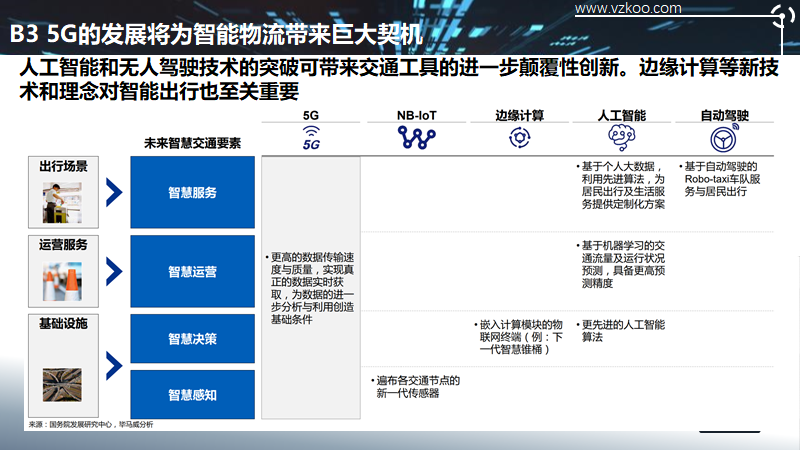 物联网、云计算、大数据、 人工智能、运筹学、AR/ VR、区块链、机器人等关键技术驱动物流在模块化、自动化、信息化等方向持续、 快速变化 。5G通信技术满足这些关键技术对于高带宽、低时延和海量连接的需求 。未来5-10年,绝大多数新技术进入生产成熟期。