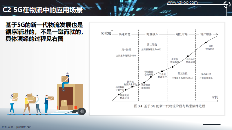 基于5G的新一代物流发展也是循序渐进的,不是一蹴而就的,具体演绎的过程见右图